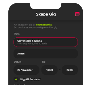 Att hitta personal har aldrig varit smidigare. Att skapa ett konto och lägga upp ett gig tar bara några minuter.
