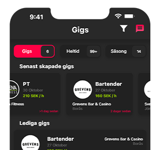 Hitta ett gig under den tid och lön som tilltalar dig. Du kan hitta gigs, heltid/deltid samt säsongsarbeten.